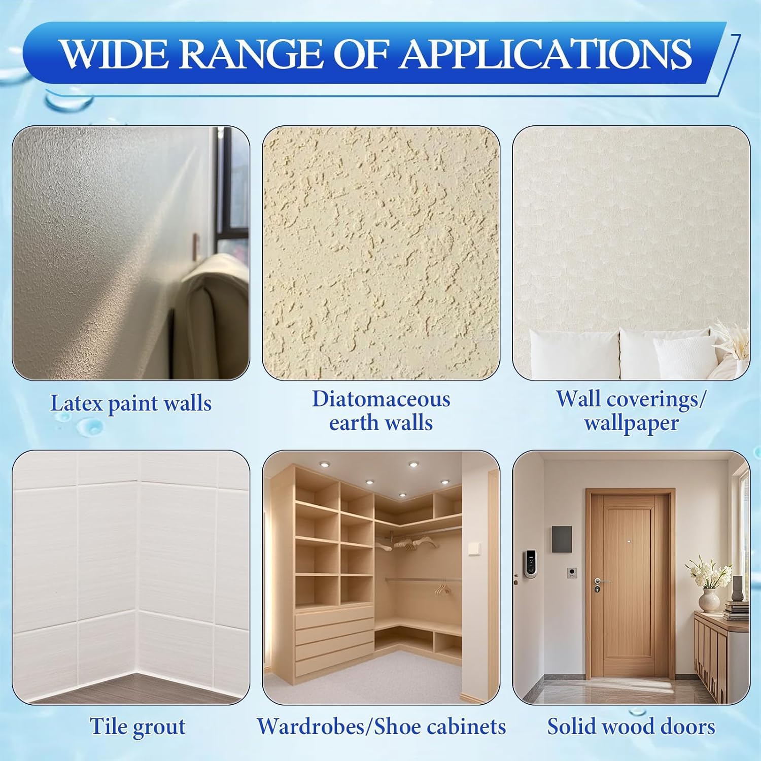 Suitable for all types of painted walls, including latex paint, semi-gloss paint, etc