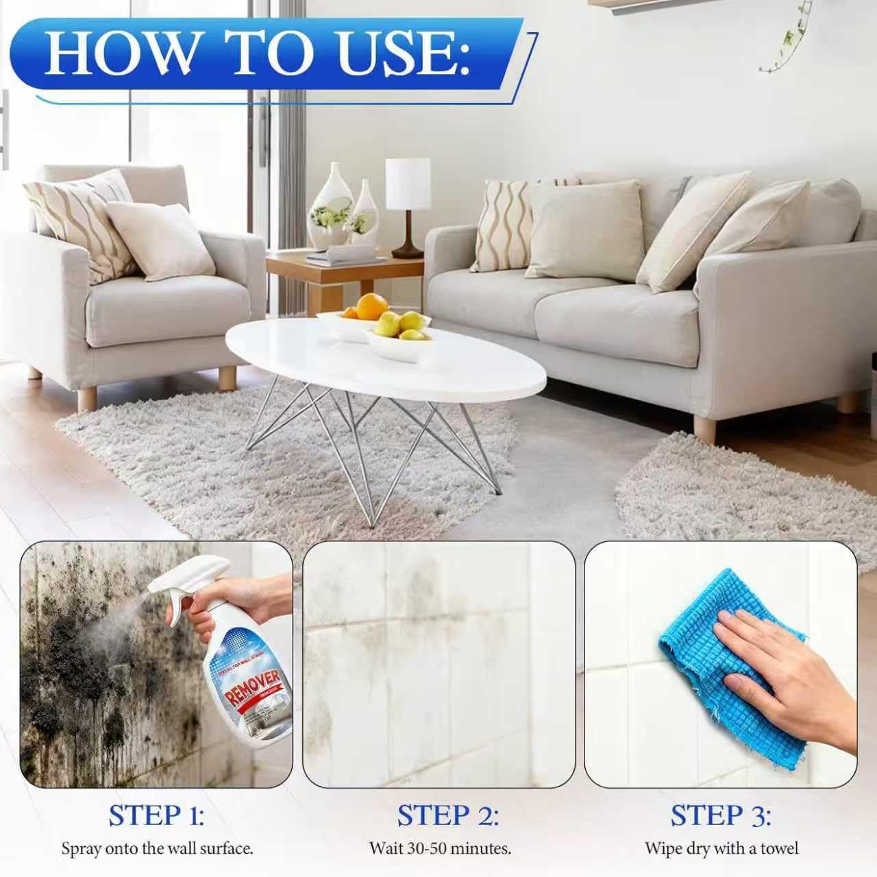 This wall stain remover efficiently eliminates various types of stains and dirt from wall surfaces while without damaging the wall