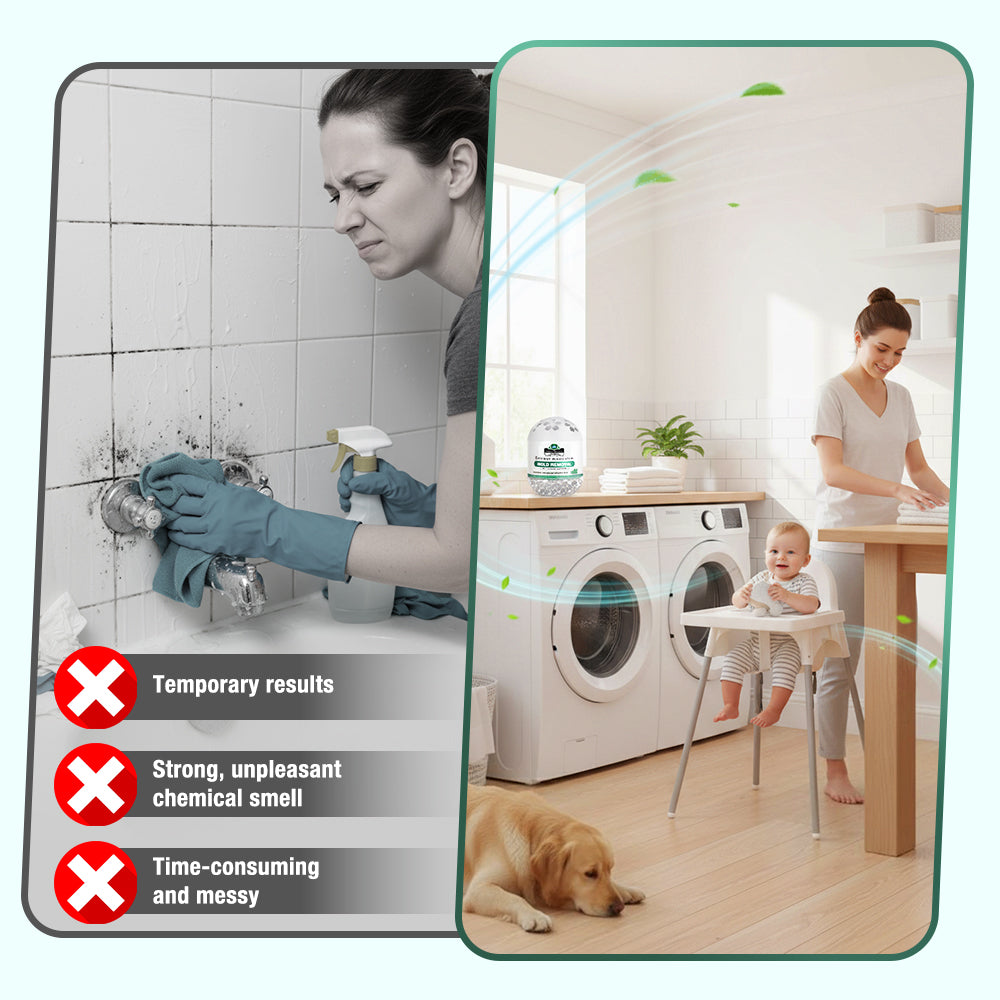 No electricity, scrubbing, or harsh chemicals required. Simply place the Daphtora® MoldiZero Mildew Clearing Magic Box in moisture-prone areas such as bathrooms, laundry rooms, closets, and kitchens. It passively absorbs excess moisture while helping eliminate mold and mildew spores—supporting long-term prevention at the source. Safe for children and suitable for everyday home use.