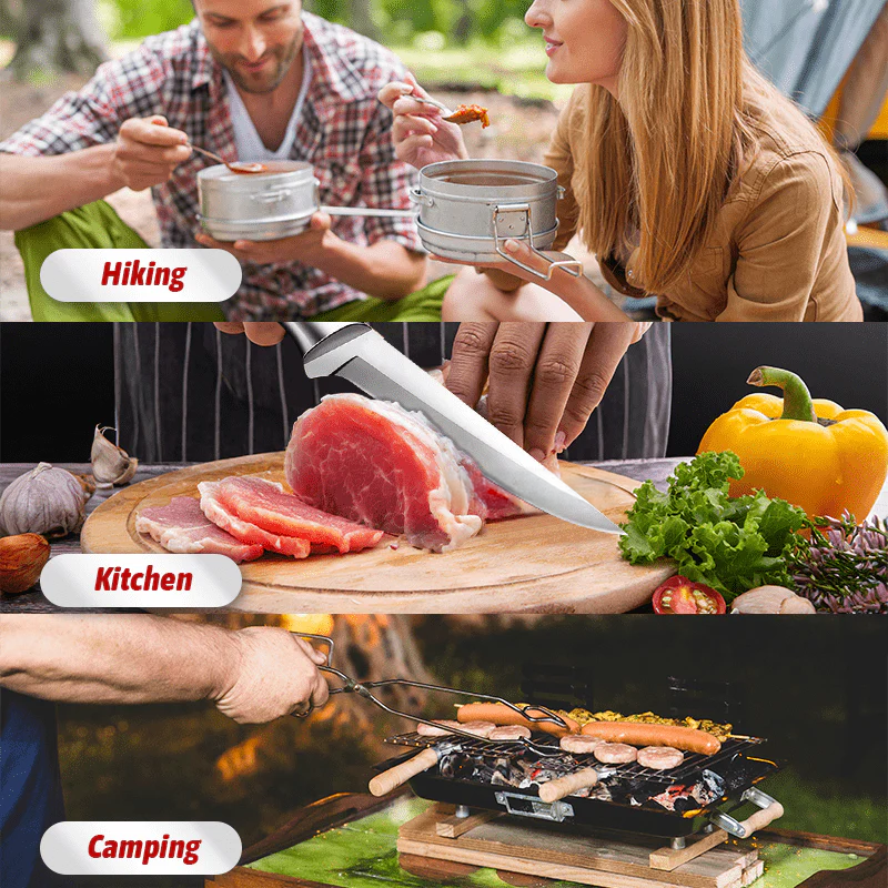 This heavy-duty boning knife performs flawlessly on a wide variety of cutting jobs aside from your general butchery use. Great for slicing herbs, vegetables, fruits or even for peeling skin and thick rinds to efficiently speed up meal prep! The butcher knife’s remarkable precision and super-sharp blade is even applicable for sharpening logs or sticks and even for simple daily tasks like opening packages. An ideal companion for butcherhouse/slaughterhouse, household kitchen, camping, restaurants, picnics, survival, and other indoor or outdoor usage.